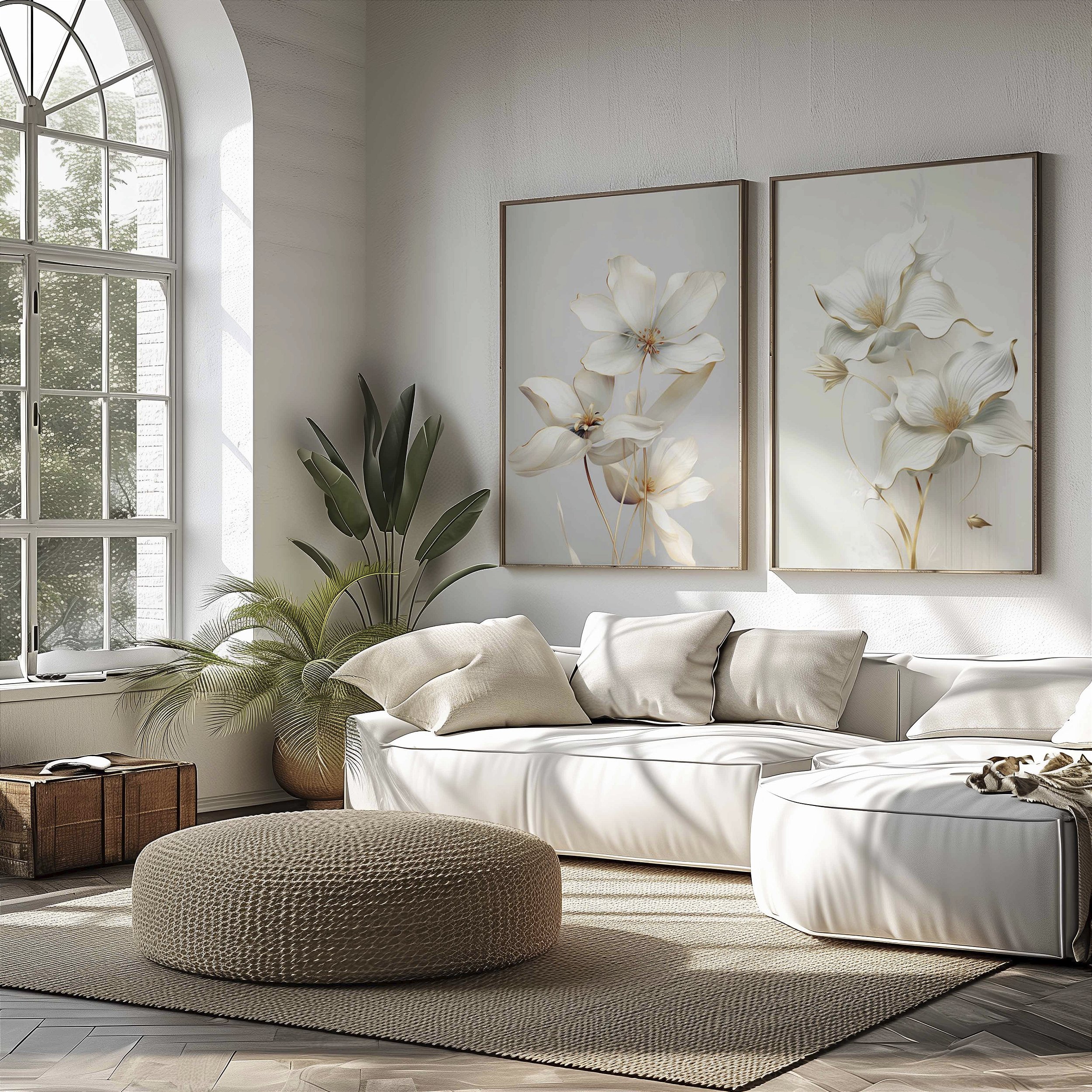 Quadro Decorativo Flores Delicadas Folhas Brancas Natureza Clean